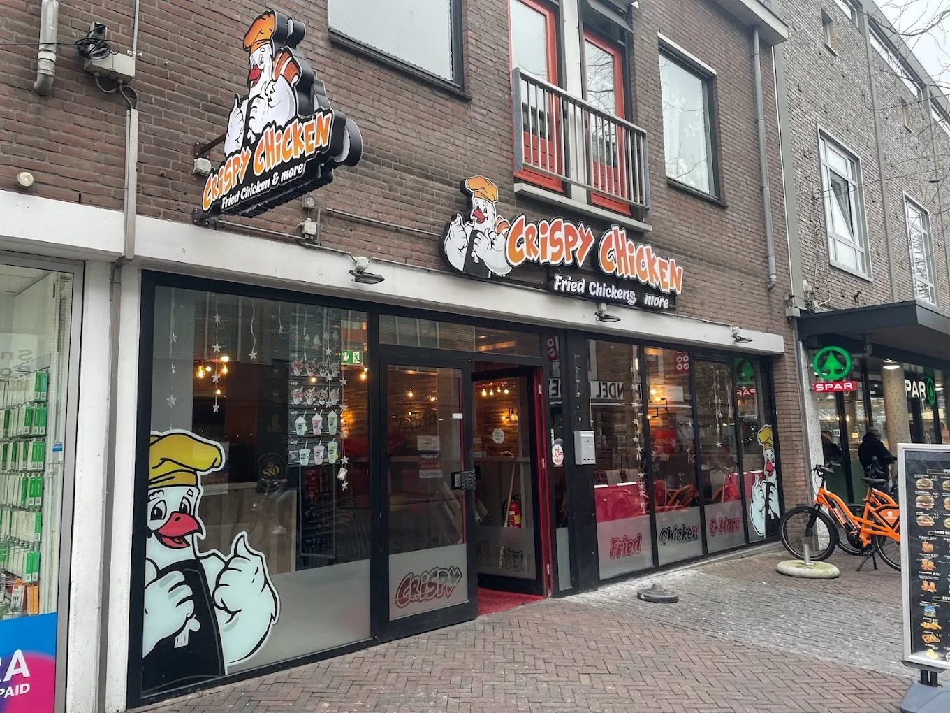 Crispy Chicken is a venue presented in Enschede, Marktstraat 11A, 7511GC. It features a comfortable and cozy interior, offers vegetarian options, is open in the evening, provides wireless internet access.