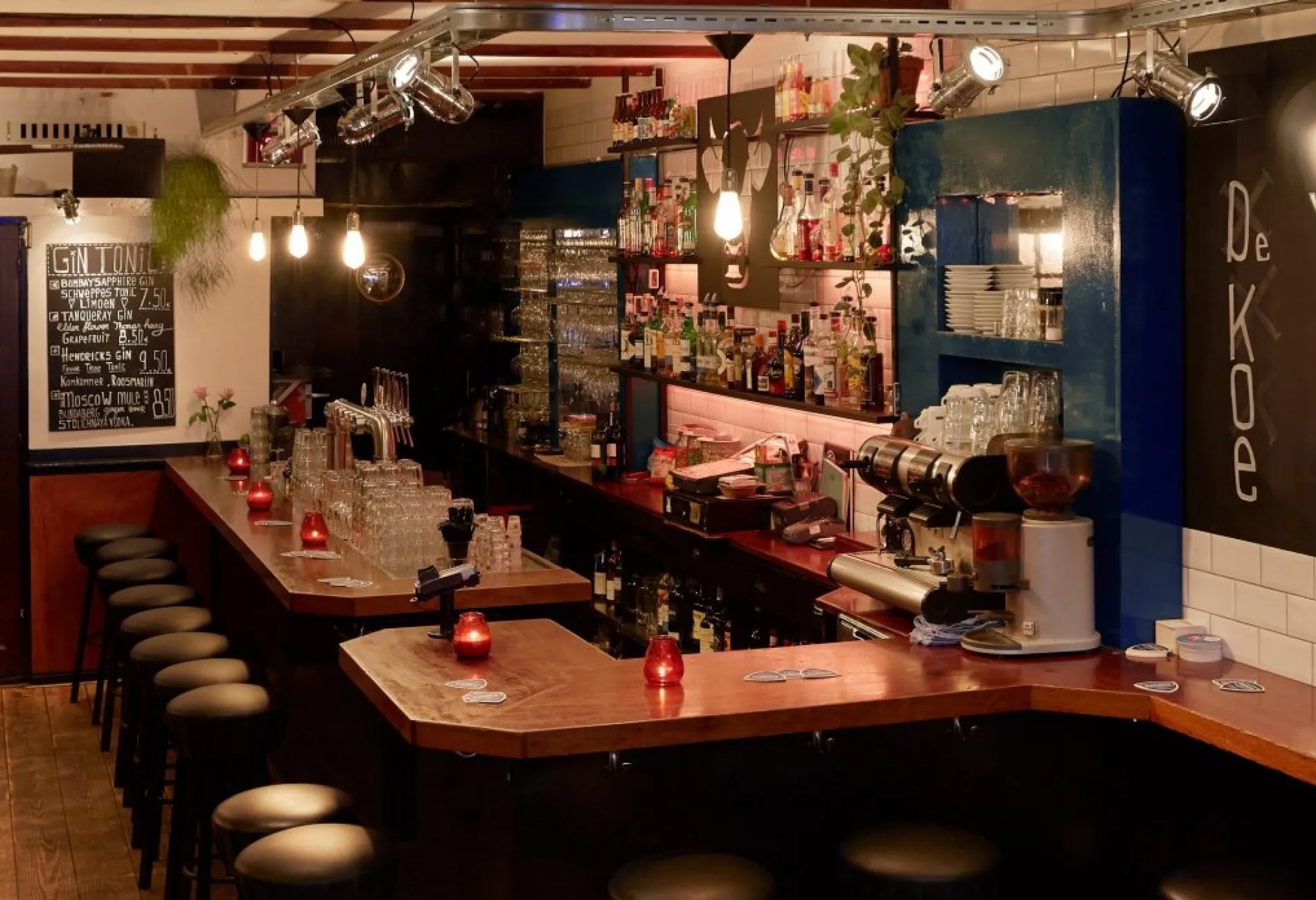 De Koe is a venue located in Amsterdam, Marnixstraat 381-H, 1016XR. It features a comfortable and cozy interior.