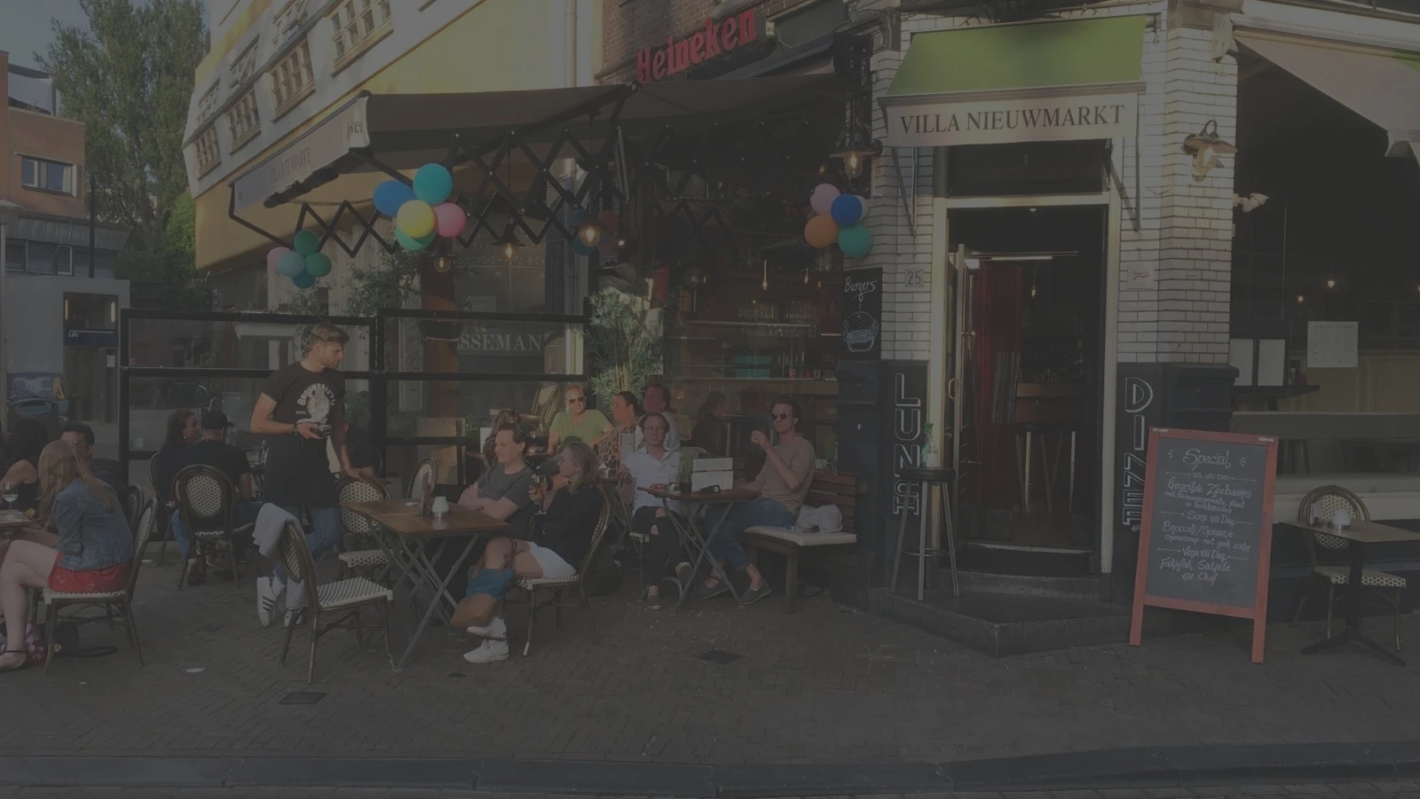 Villa Nieuwmarkt is a venue presented in Amsterdam, Nieuwmarkt 25, 1011JS. It offers a warm and cozy setting, offers vegetarian options, offers an evening setting.